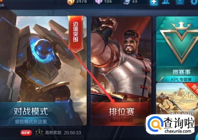 进入之后,点击“排位赛”,进入下一页面,如图所示。