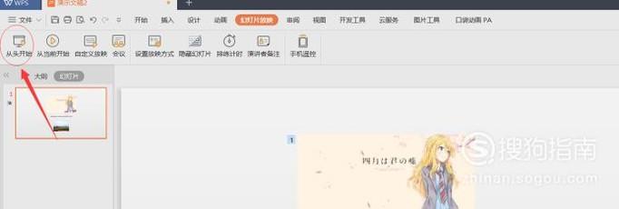 点击工具栏中的幻灯片放映,就可以看到图片自动的播放了