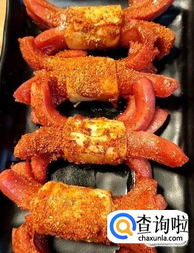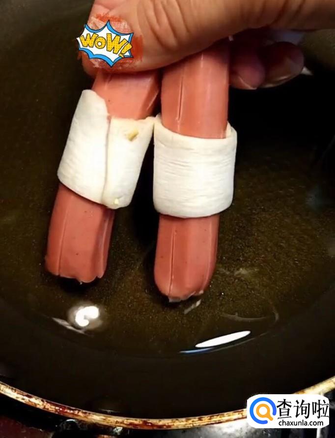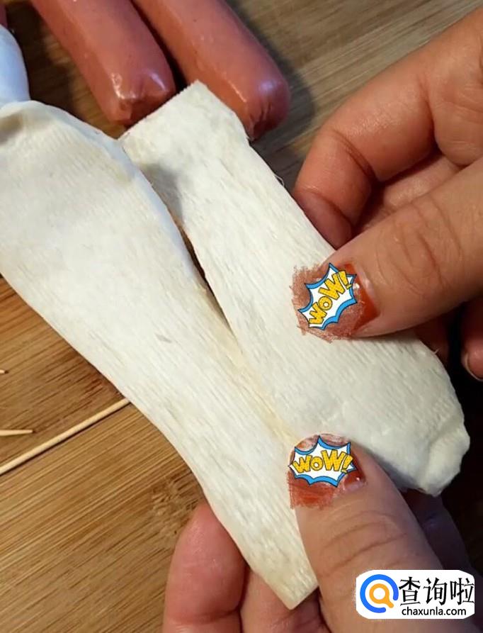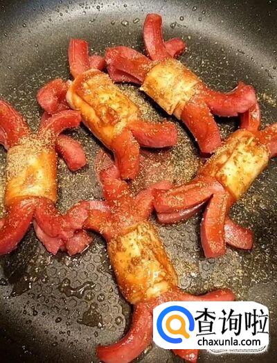 最后美味的干炸鸡腿菇卷烤肠就制作完成啦!装入盘中就可以享用啦!