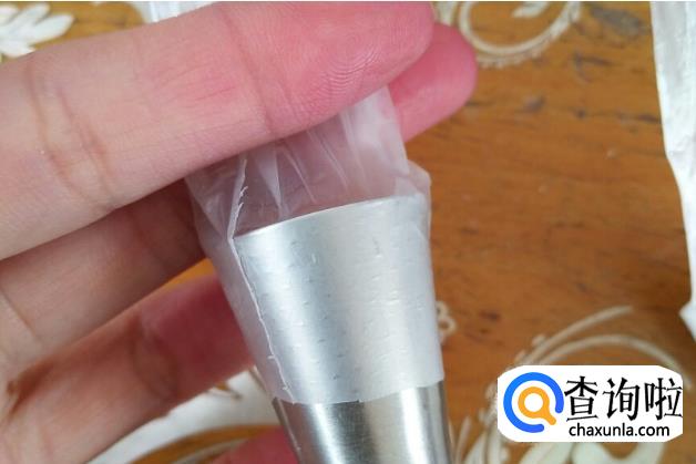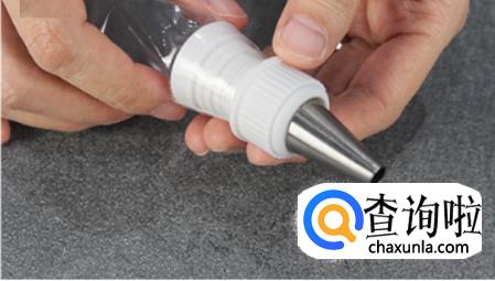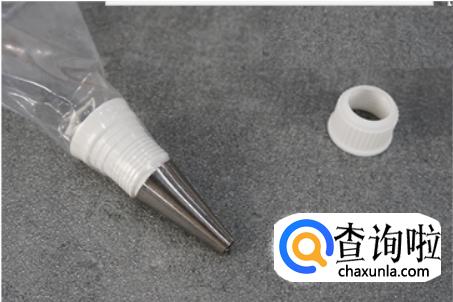 从外侧将裱花转接头的另一截套入,将裱花嘴圈住,扭好固定,就可以使用了。