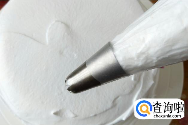 然后就可以裱花了 ,用完就把里面有奶油的裱花袋拿出去,继续装奶油,继续裱花。