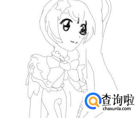 最后在画出贝贝公主的身体及胳膊,然后在画出贝贝公主的衣服,这样我们的贝贝公主就画好了,如图所示: