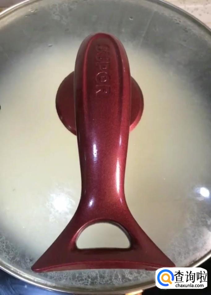 接着我们将榨好的豆浆过滤到锅中,开小火,煮至沸腾关火