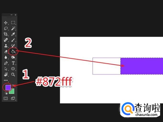 设定前景颜色为:紫色,使用油漆桶工具,对选区进行填充。