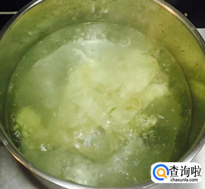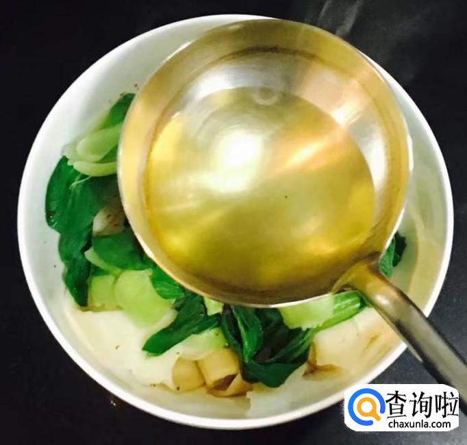 小油菜择去老叶分成单叶片反复冲洗干净泥沙控干水分,锅中加水煮沸放入小油菜焯水至变色后捞出过凉水沥干水分备用