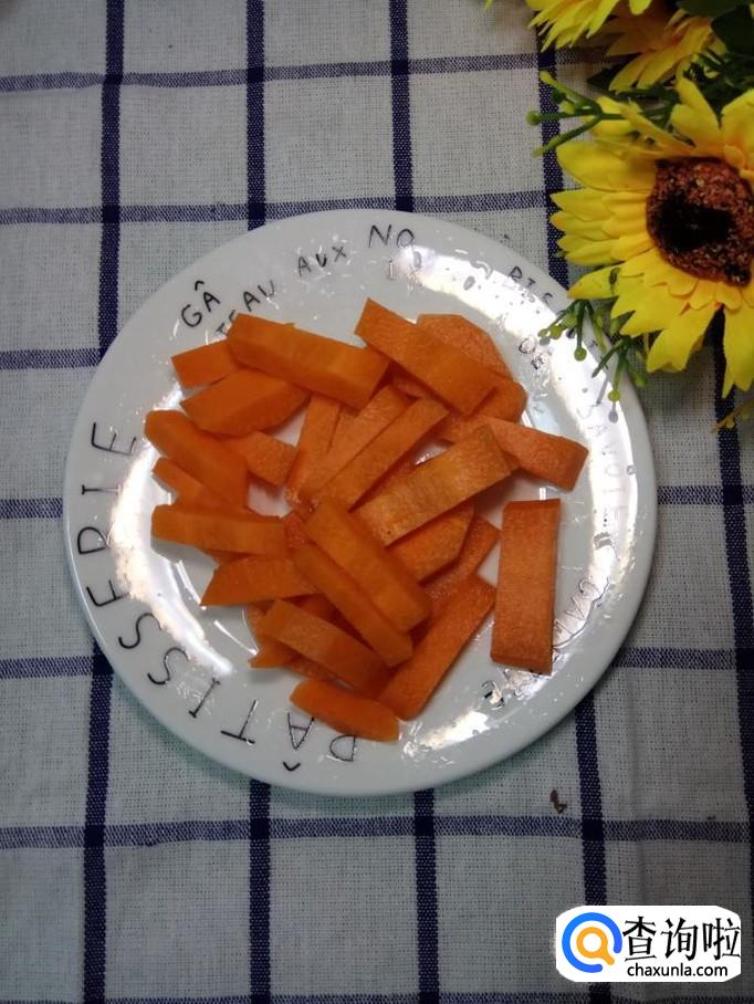 将胡萝卜和西兰花分别焯水,焯水后,捞出备用。