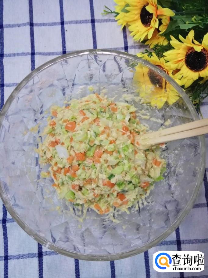 加入适量面粉,淀粉,再加上少许清水搅拌均匀,注意,面粉要比淀粉多一些。