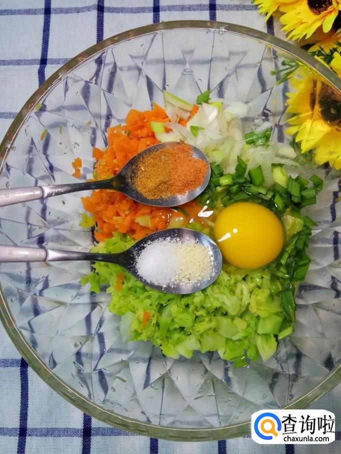 西兰花适量,胡萝卜适量,蒜苗适量,葱适量,鸡蛋一个,盐是,鸡精适量,五香粉适量,麻辣鲜适量,蚝油适量,胡椒粉适量。