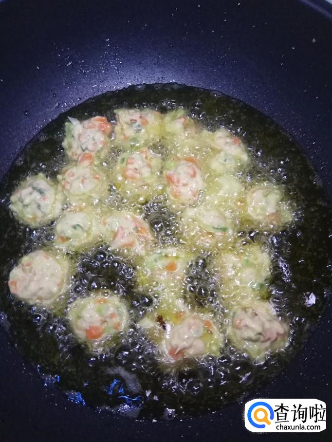 用手团成丸子,锅中放油,油温五成热,放入锅中,小火慢炸。