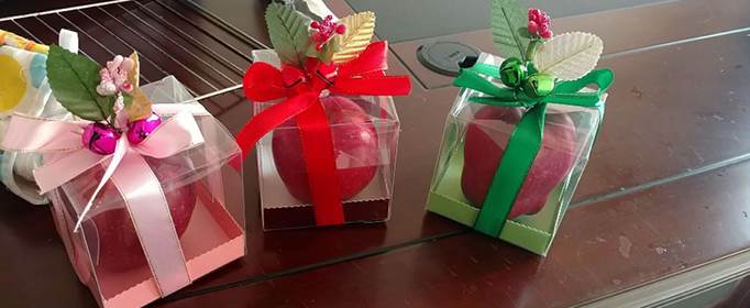 青年男女们会在平安夜这一天相互赠送“平安果”,也就是苹果,象征着平安、祥和。一些情侣之间还会互相赠送象征着“一辈子”的杯子,或是象征爱情的玫瑰花。也可以赠送帽子、围巾、手套,能让人在寒冷的冬天感受到温暖。