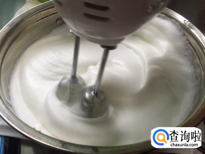 打发30秒后,分3次加入白砂糖,然后继续打发。