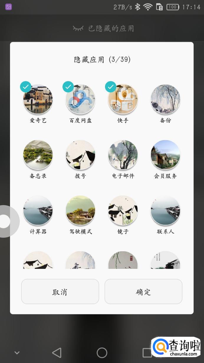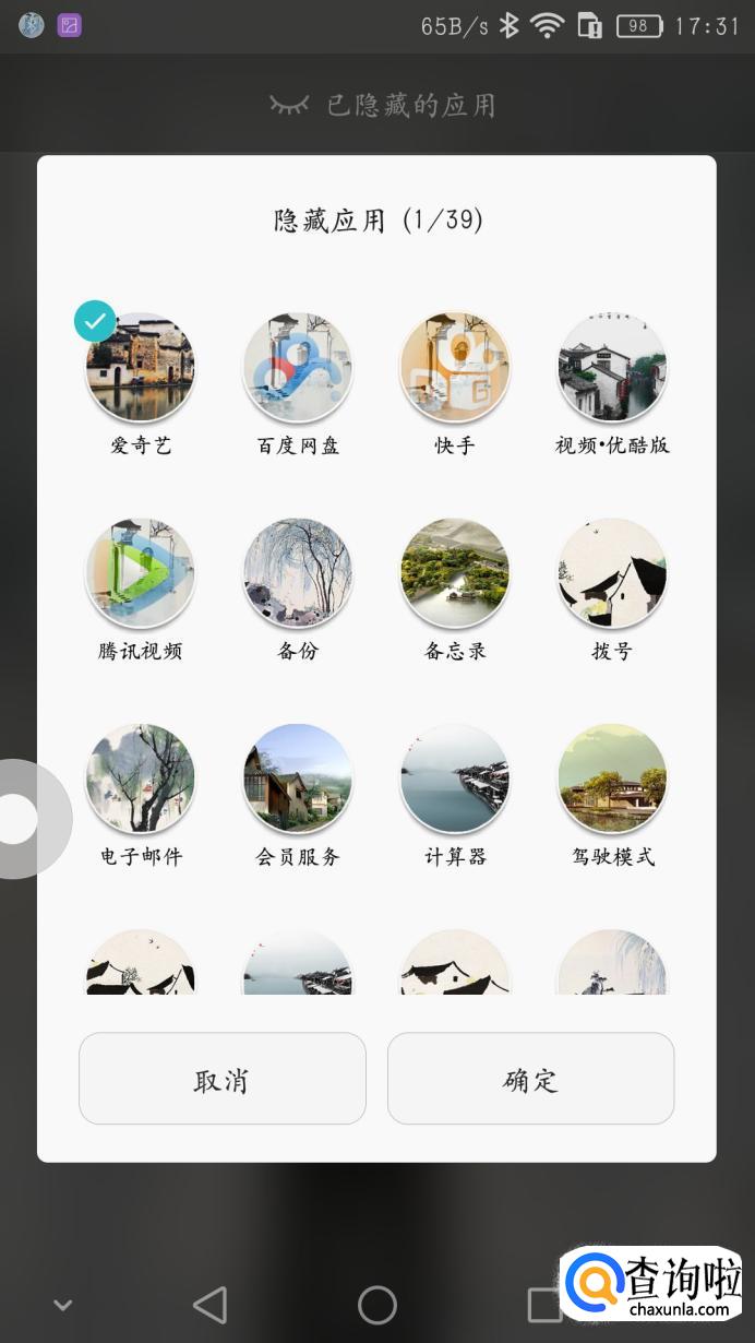 点击加号后,就会出现我们手机上安装了的程序,选择自己想隐藏的程序,点击确定。