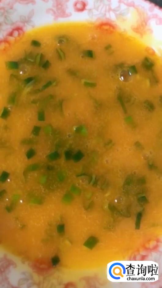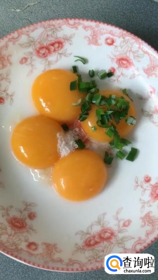 蛋黄内放入葱花、盐