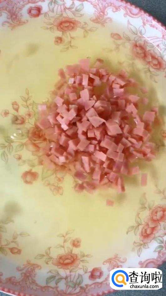 蛋清放入火腿丁,均匀打散