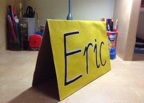 姓名牌有不同的含义,一是利于老师叫错名字,二是增加学生自尊、自信心。用卡纸折叠,文字标注就能制作成一个有效的姓名牌。