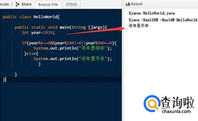 接着我们执行程序就可以看到这个年份是平年还是闰年了,如下图所示