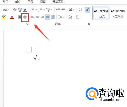 打开word这款软件,然后在编辑区里输入一个钩,如图所示: