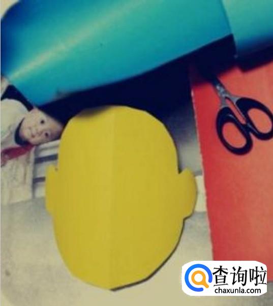 将黄色的卡纸剪成孙悟空头的轮廓,小朋友们记住要有耳朵哦!红色的卡纸则需要剪成孙悟空面部的轮廓。黄色部分明显比红色部分大才行哦!