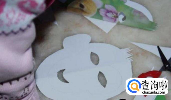 将两张卡纸按孙悟空头面部比例粘在一起,然后用铅笔画出孙悟空的眼睛,嘴巴,不用太精细,也可以用圆形替代。然后用剪刀剪掉它的眼睛,嘴巴。