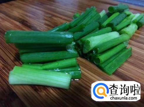 准备几颗小葱,清洗干净之后控干水分,切成段。