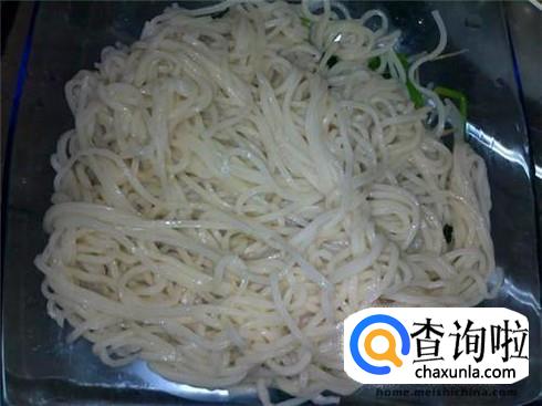 另一个锅里加清水烧开,最好是是用手擀面,吃起来口感好。手擀面放进去煮熟,捞出来用温热白开水冲一下然后放进碗里。