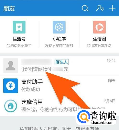 进入找人代付后,找到要付款的联系人,点击该名联系人进入。