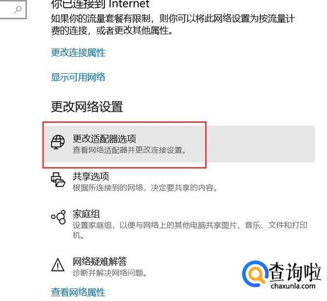 接下来,我们在打开的页面中,选择“更改适配器选项”按钮。
