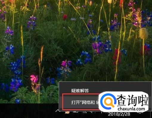 首先,我们先对着Win10系统任务栏网络图标击右键,选择“打开网络和Internet设置”选项。