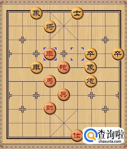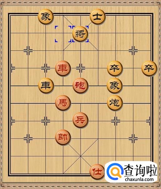 红方先行,红方车四平六,红方车及时抢占了黑方老将的当头,红车当头将军。如图所示。