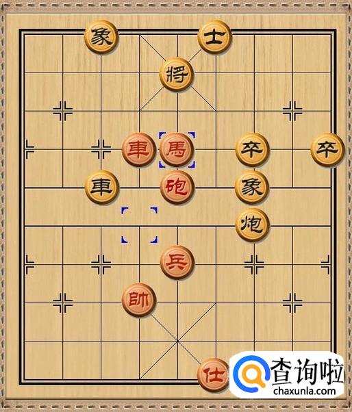 红方马六进五,红方马跳到中路,为红方炮搭炮架,红方形成了马后炮将军。如图所示。