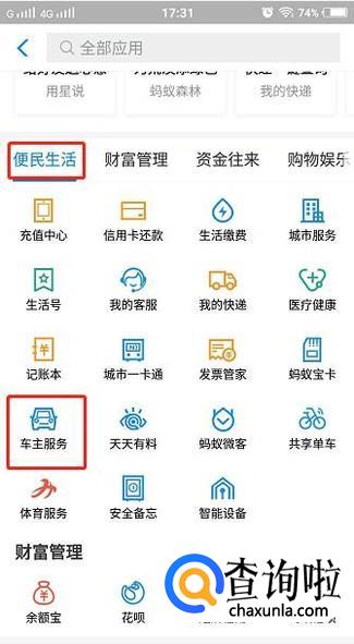在“便民生活”中找到“车主生活”选项!如图所示: