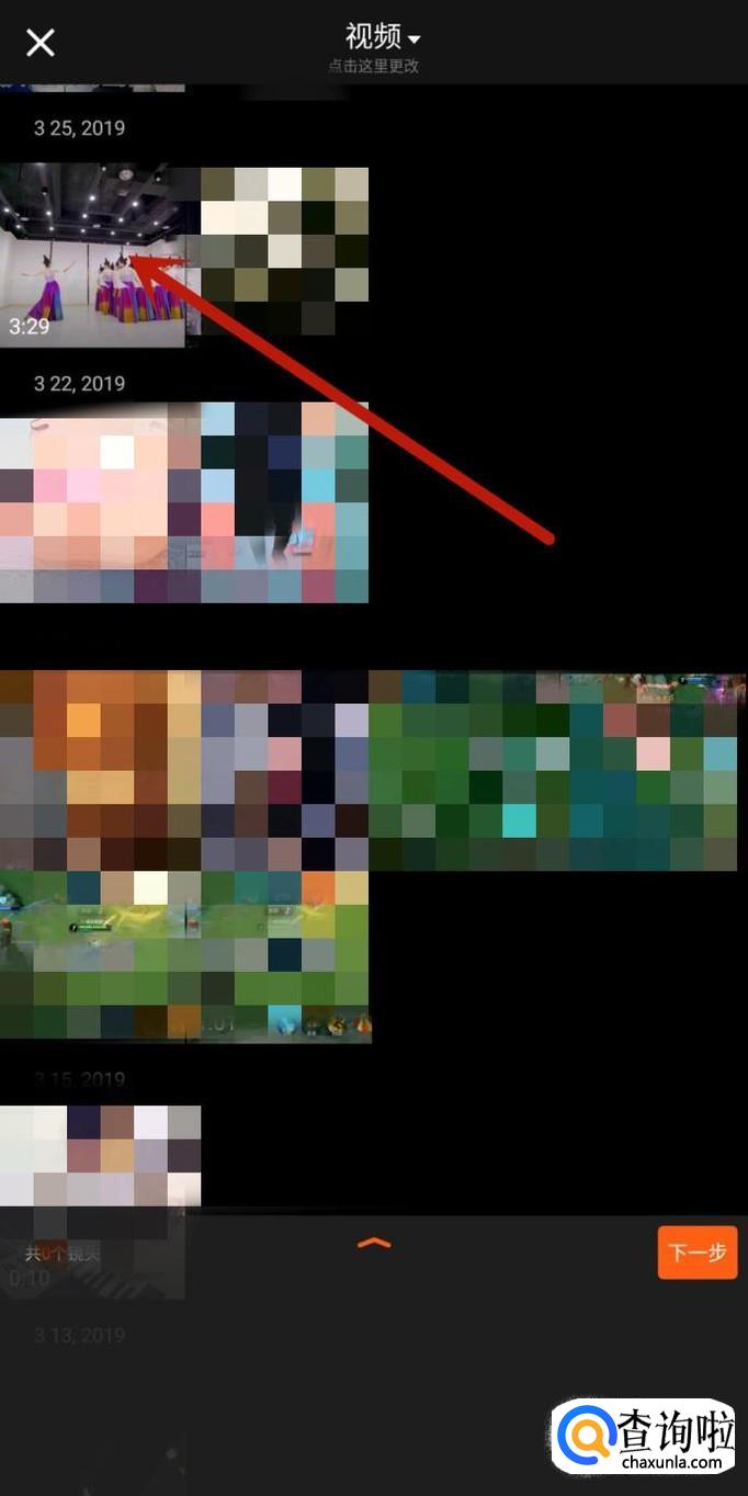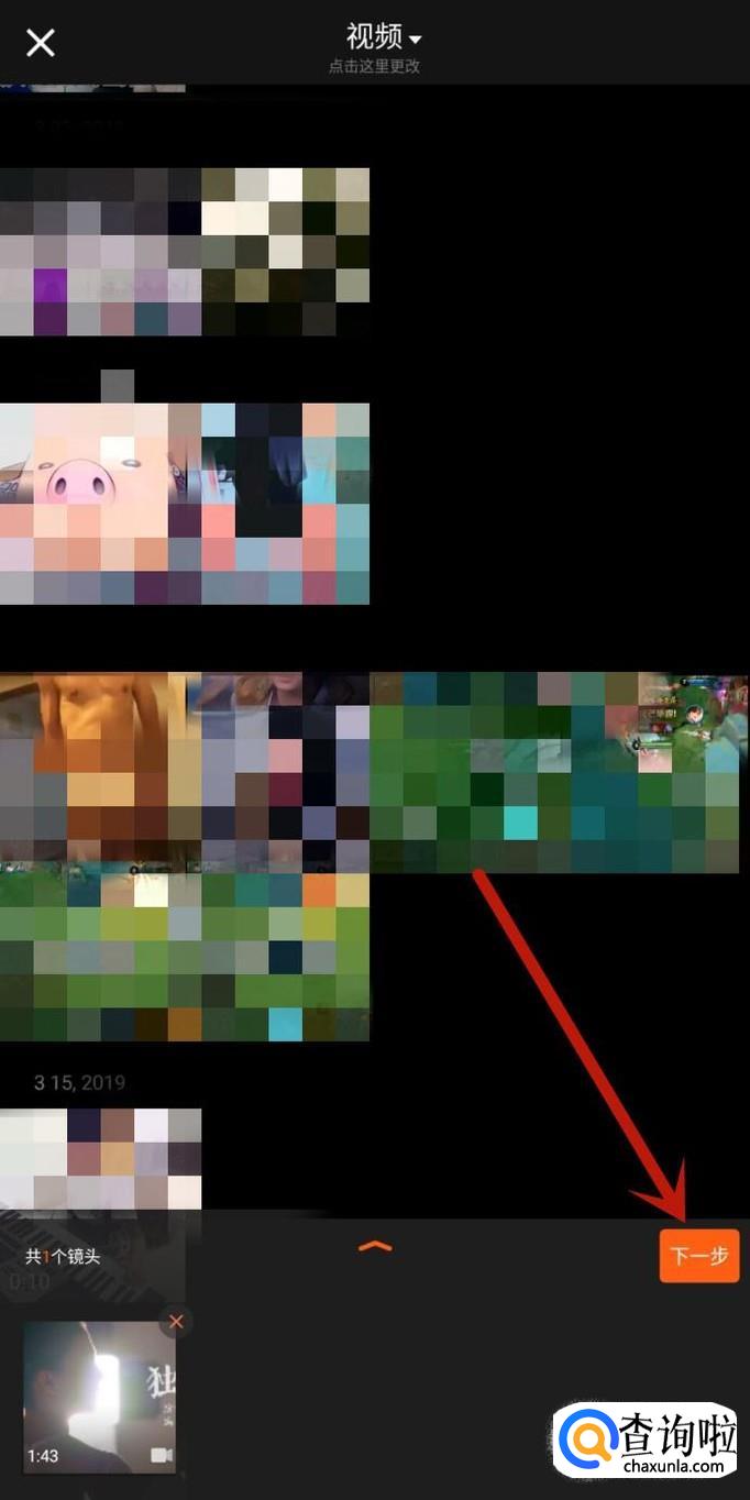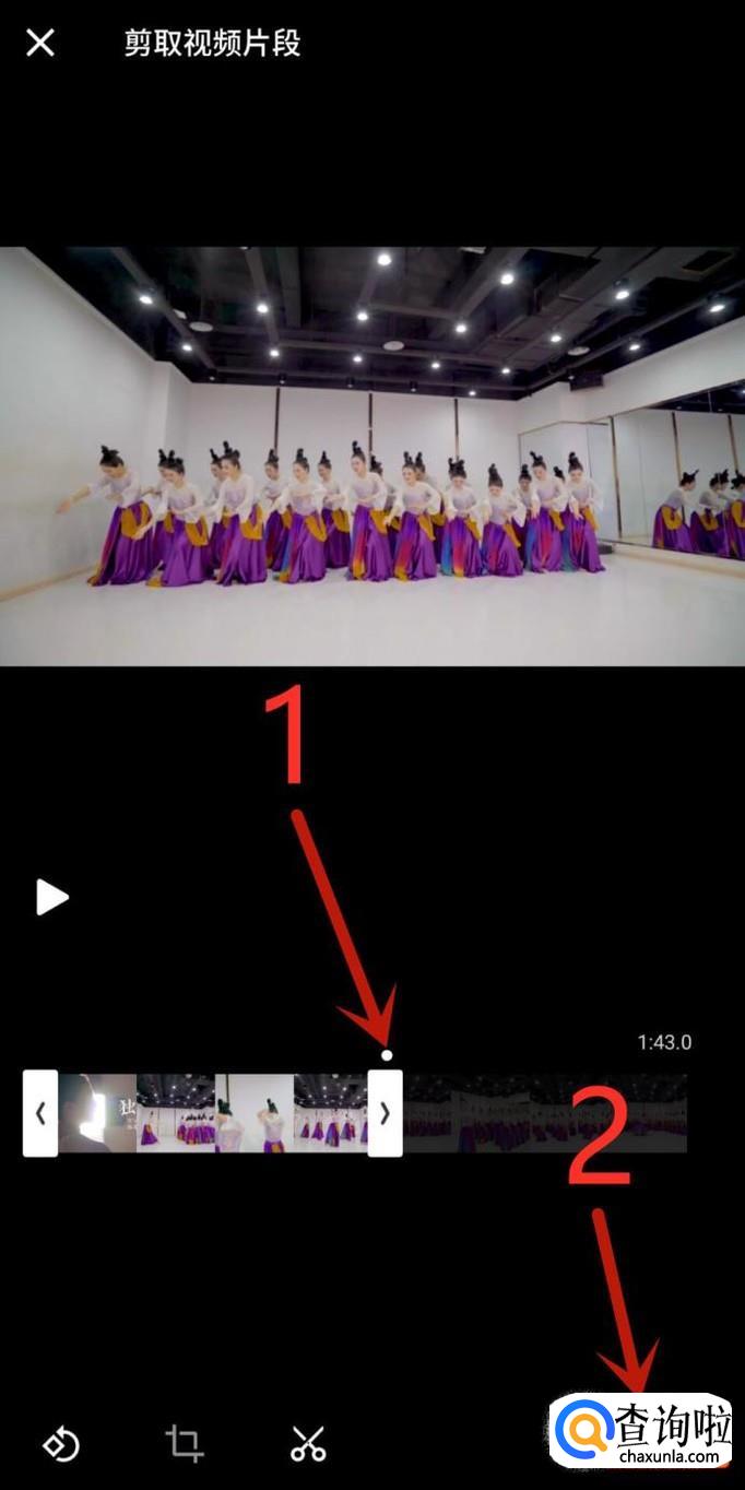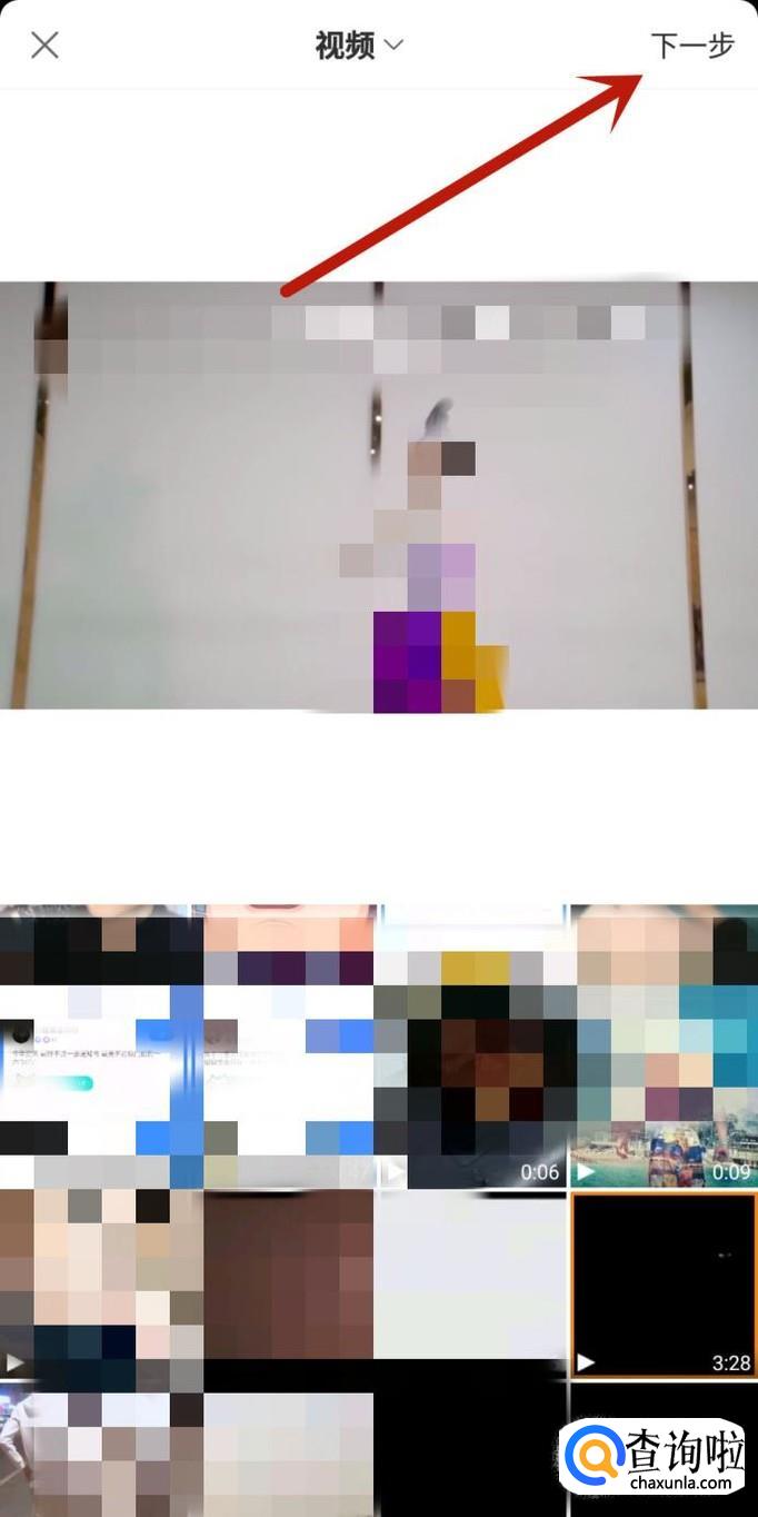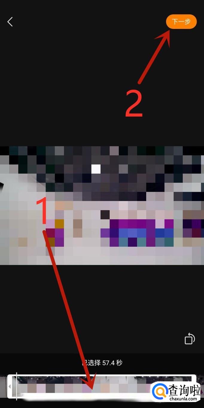 进入之后,拖动图示位置的视频,选择截取区域。点击“下一步”。