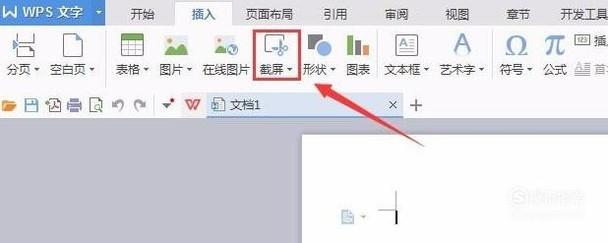 在菜单栏找到插入,然后在插入菜单栏的编辑区找到截屏选项,如图所示。