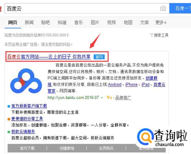 之后我们可以看到第一个搜索结果是标记了官网的,这也是百度云的官方网站,我们点击进入。