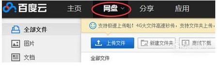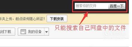 进入百度云后,首先我们点击网盘栏目左上角的“网盘”进入网盘页面,之后能看见右上角的“搜索”,需要注意的是这个搜索框只能搜索自己的资源,不能进行全网搜索。