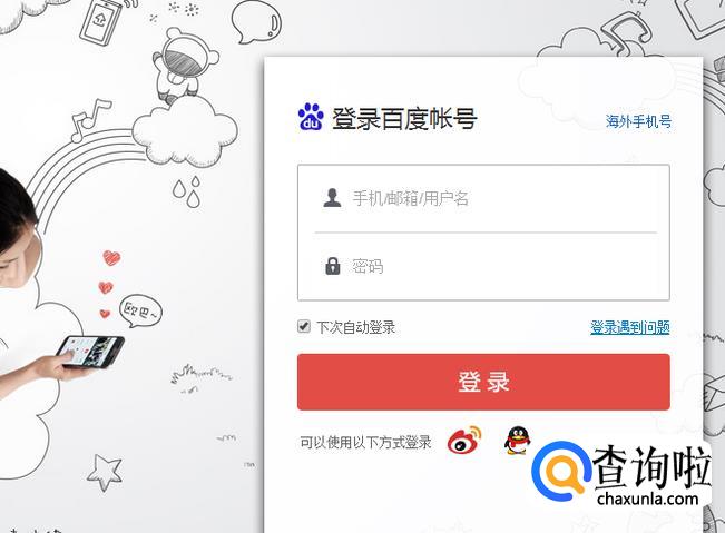 进入百度云官网后,我们在登录框中输入百度账号密码,或者是微博、QQ等账号登陆。