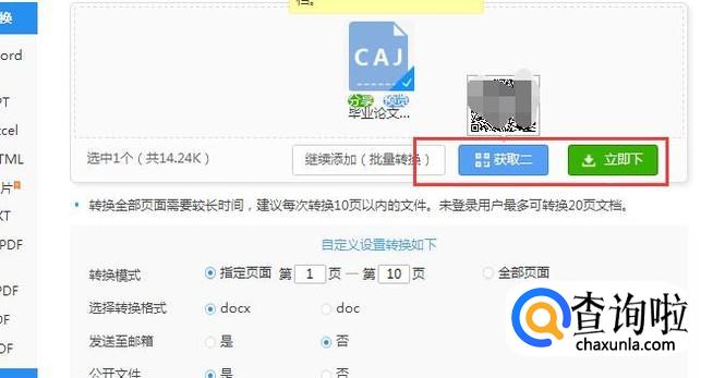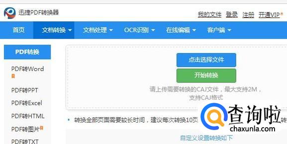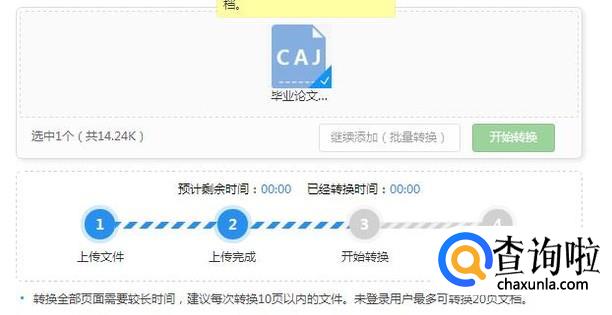 这时候我们可以看到跳转的页面,我们将caj文件进行上传到网站中“点击选择文件”进行上传