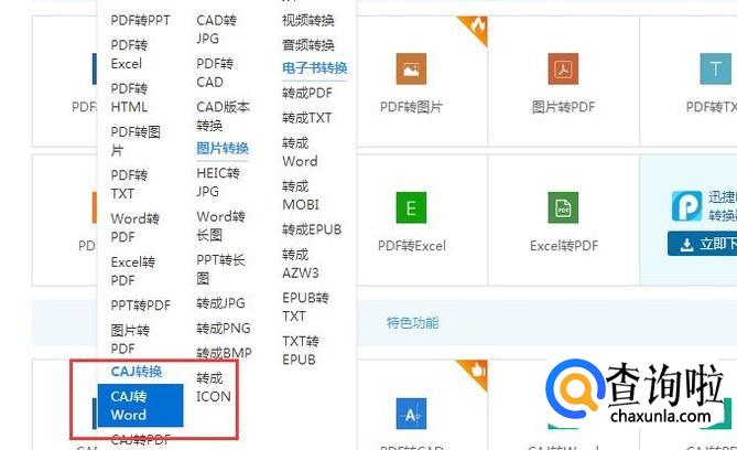 我们选择“文档转换”——“caj转Word”进行点击,我们可以看到跳转页面
