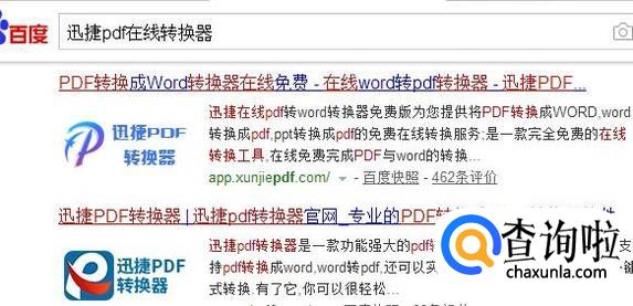 首先我们在百度浏览器中进行搜索“迅捷PDF在线转换器”然后点击进行搜索打开