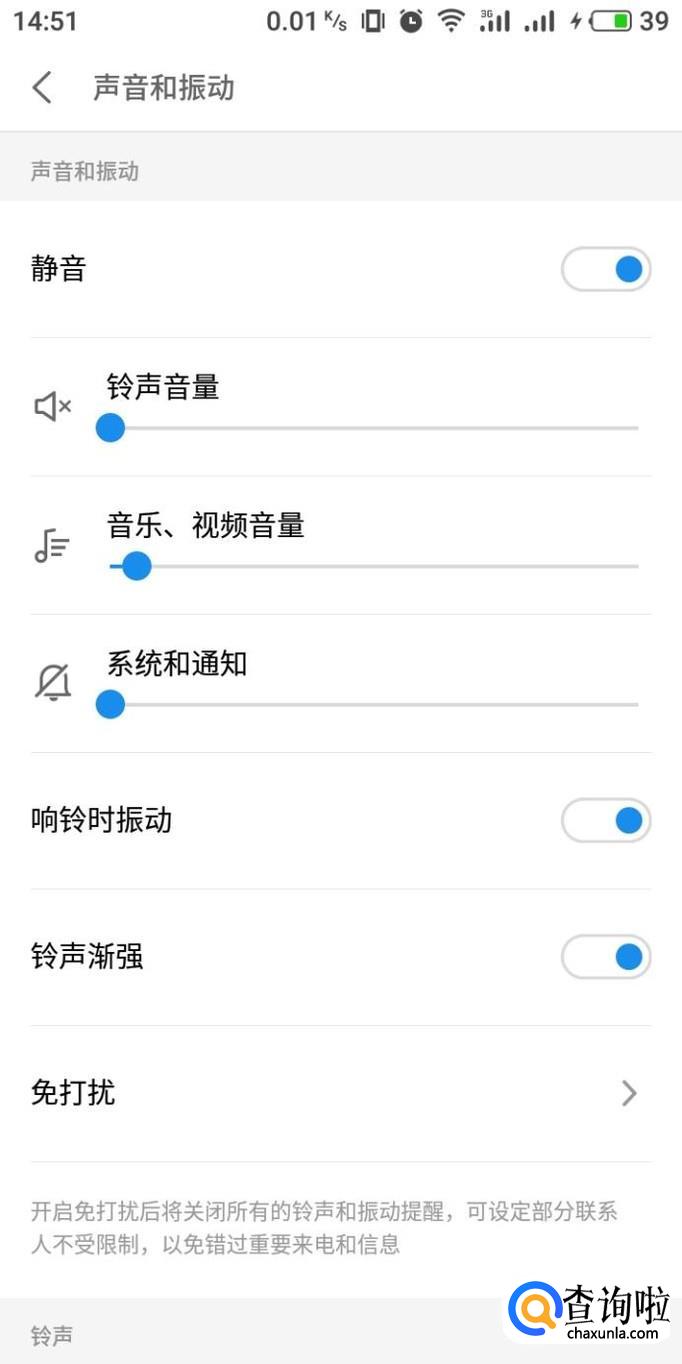 进入声音和振动设置界面,在下方选项中点击“免打扰”