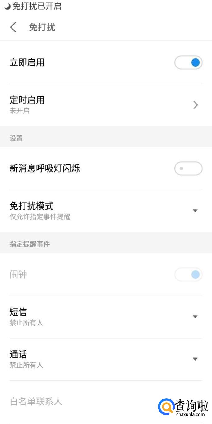 进入免打扰界面,将立即启用右侧的滑块开启之后即可开启勿扰模式。