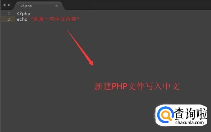首先我们新建一个PHP文件,然后在文件中写入一句中文内容,如下图所示