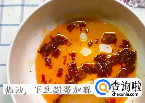 依次将豆瓣酱,香菇碎,洋葱碎,青椒,小米辣下锅炒料。