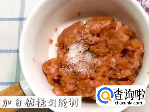 肉末加白胡椒,生抽搅匀 。