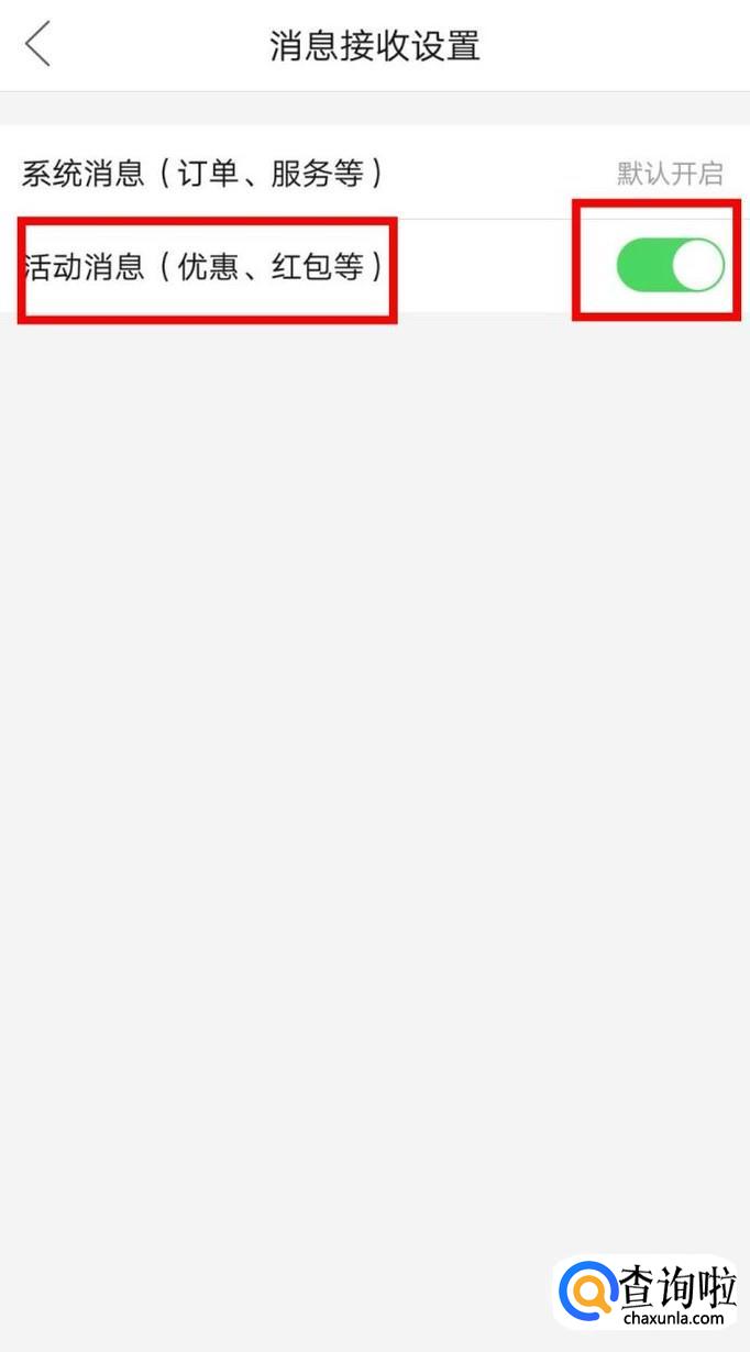 活动提醒(优惠、红包等)是勾选状态,我们点击关闭这个活动提醒就行拉!