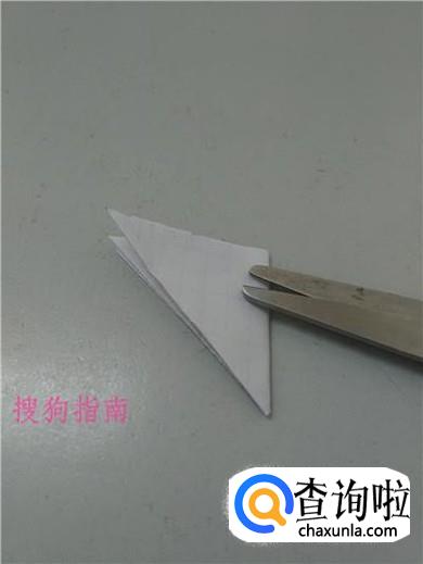 将三角形右边的角向左边对折。