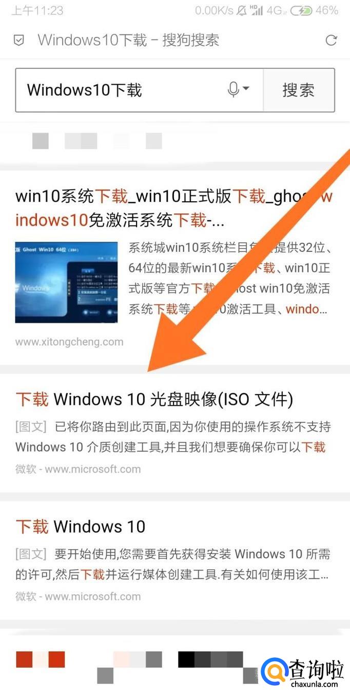 首先我们使用搜狗搜索“Windows10下载”,然后找到“微软 www.Microsoft.com”字样的下载链接,点击进入。
