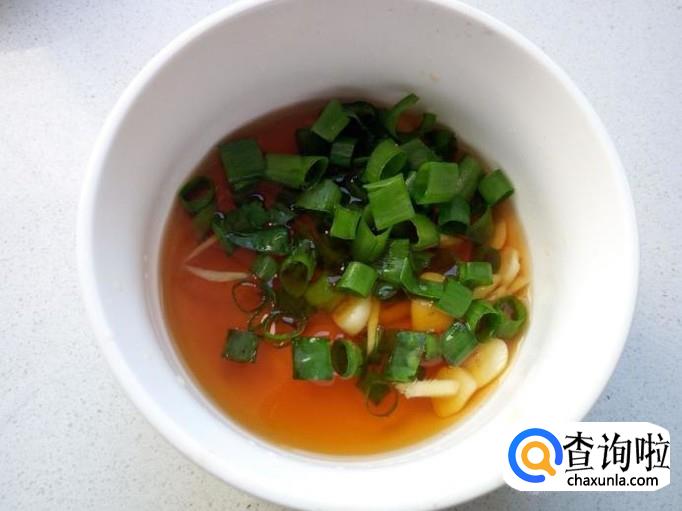 碗里放入盐,味精,酱油,料酒,再放入切好的葱,姜,蒜,兑少量的水,调和成料汁,备用。