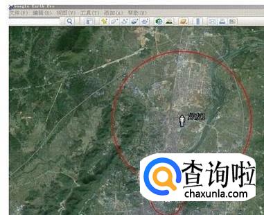 在google地图客户端中以自己为圆心,以1.07km为半径画一个圆。如图