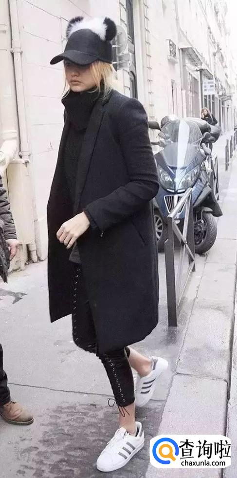 黑色大衣搭配白色运动鞋,非常经典的黑白配,内搭选择黑色的短款高领毛衣,下装选择黑色的打底裤,再漏出脚踝。这样搭配不仅时尚、美观,还不会出错。